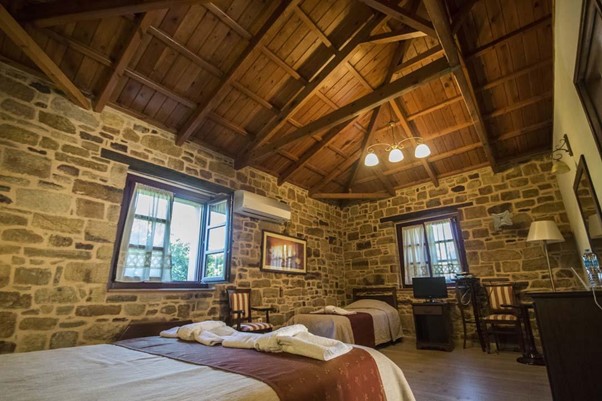 Το Ρίζικο διαθέτει σουίτες, δίκλινα και τρίκλινα δωμάτια σε πετρόκτιστα κτίρια. Συνδυάζει την αισθητική μιας άλλης εποχής με με τις ανέσεις του σήμερα.